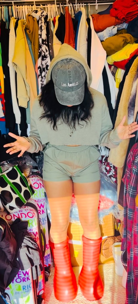 🩶I love this look it’s sooo cute and fun. The Astro boots I had to have because they are different. This two piece vibe I love high waisted and crops. This is my vibe for todaynow I’m ready for the day. I can’t be without my fashion.🩶
