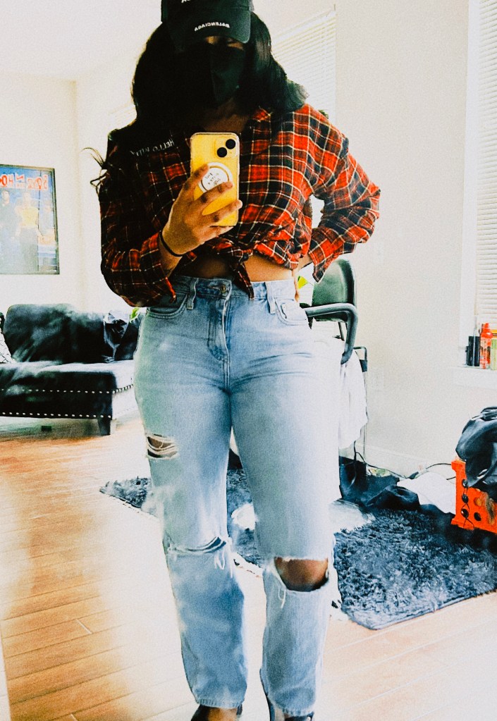 🩵This vibe is soooo cute i loves it. Highwaisted ripped jeans log sleeve crop top with a baseball cap with platform sneakers is my vibe today.🩵