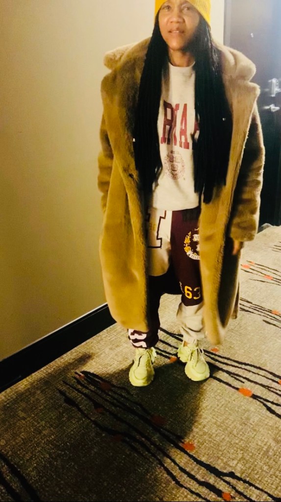 ♥️I love fur coats and sweats! This look is totally my vibe in the fall and winter. Oversized fur coat with oversized sweatsuit tennis shoes and a beanie. So comfy cute and fun! I had to post one more fall and winter look because I miss it already lol!♥️